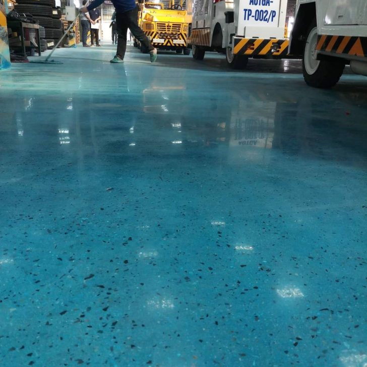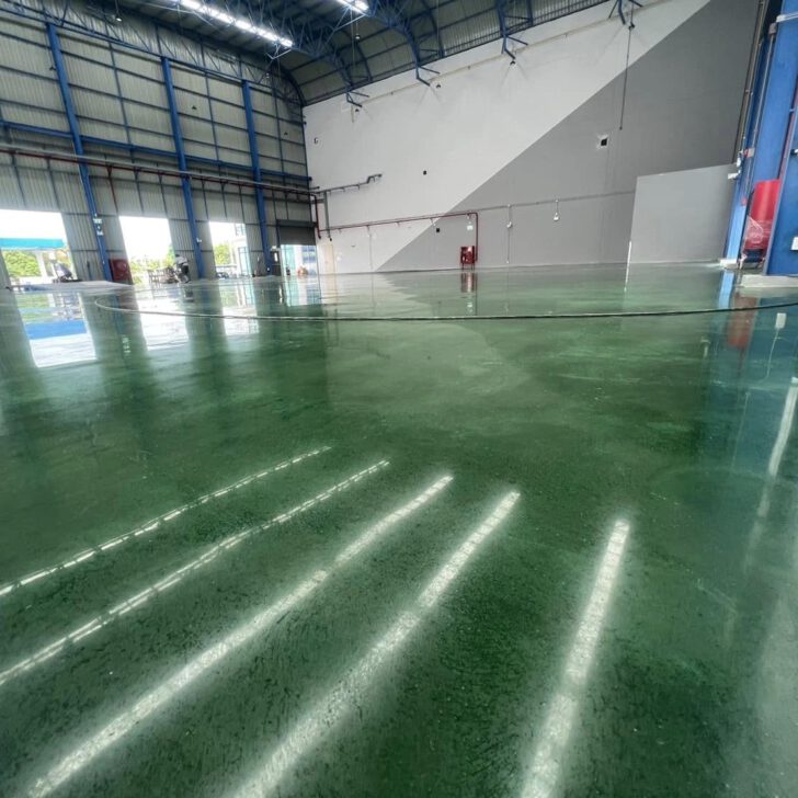 ผลงาน Polishing ขัดเงาพื้นคอนกรีตย้อมสีเขียว