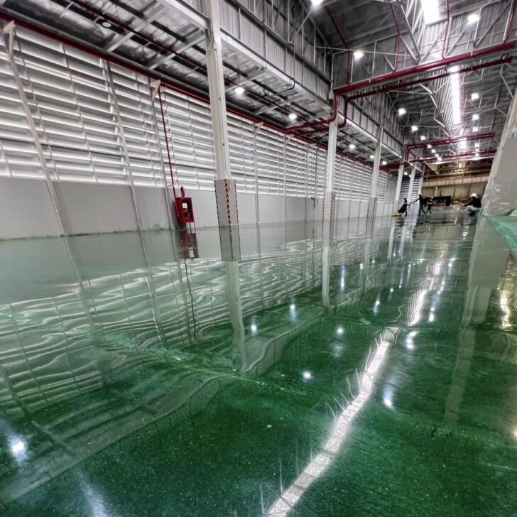 ผลงาน Polishing ขัดเงาพื้นย้อมสีเขียว งานขัดปรับปรุงพร้อมย้อมสีคอนกีตระบบ Crystal Polishing Concrete ย้อมสีด้วย Organic Concrete Dye สี Emerald Green เขียวสด งามหยด ฟื้นสภาพผิวคอนกรีตครับ