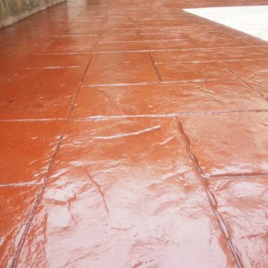 Stamp Concrete เป็นพื้นคอนกรีตพิมพ์ลายชนิดเสริมเหล็กสามารถทำความหนาได้ตั้งแต่ 3-5 เซนติเมตร มีลักษณะลวดลายสวยงามและหลากหลาย โดยเลียนแบบให้มีลักษณะได้ใกล้เคียงกับพื้นผิวหินตามธรรมชาติอีกทั้งยังสามารถเลือกสีสันได้หลากหลาย มีความเงางามแข็งแรงคงทนใช้งานได้อย่างยาวนาน คอนกรีตพิมพ์ลาย มีเสน่ห์ด้วยโทนสี ลวดลาย รวมถึงผิวสัมผัสที่คล้ายผ่านกาลเวลามาอย่างยาวนาน ผสานกับความแข็งแรง ทนทาน และทำความสะอาดได้ง่าย จึงเหมาะสำหรับตกแต่งพื้นที่รอบบ้าน เพื่อเพิ่มความโดดเด่นและได้กลิ่นอายในสไตล์ยุโรปอย่างอบอุ่น และเป็นธรรมชาติ.