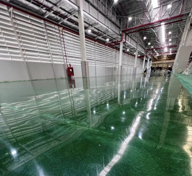 ผลงาน Polishing ขัดเงาพื้นคอนกรีตย้อมสีเขียว